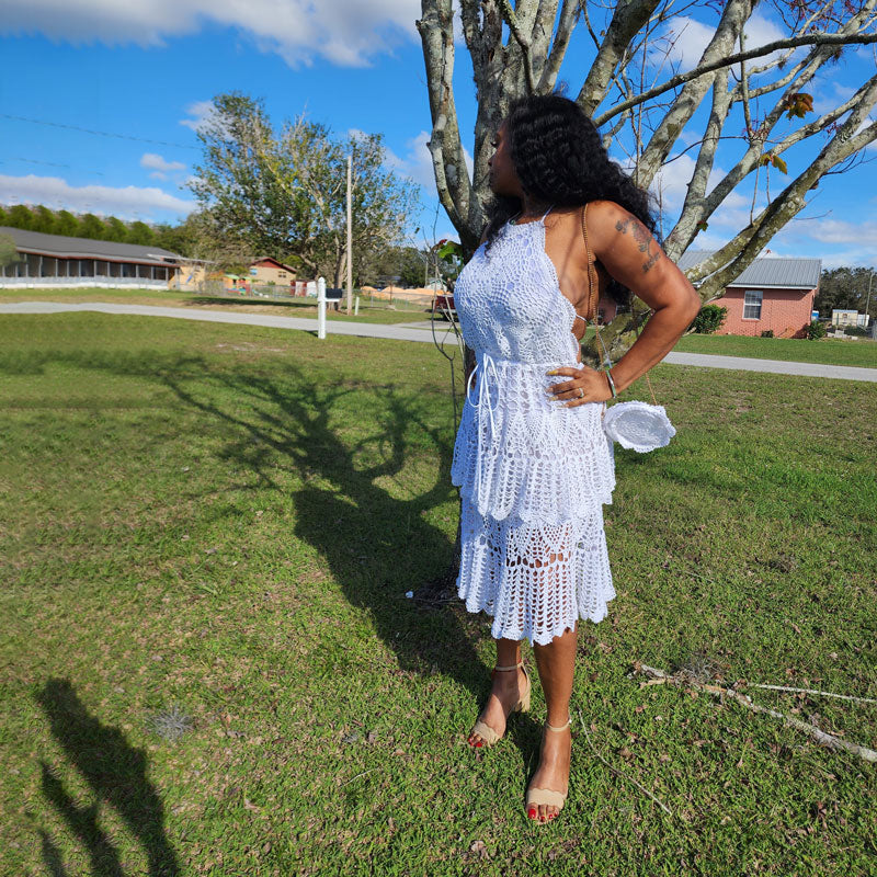Introducing the Coastal Charm Sundress - the epitome of easy-breezy beach style. This mini dress boasts a halter neckline and an open-back design, keeping you cool and stylish under the sun. The playful pattern of seashells and waves adds a touch of whimsy, making it the perfect choice for a day of seaside adventures.